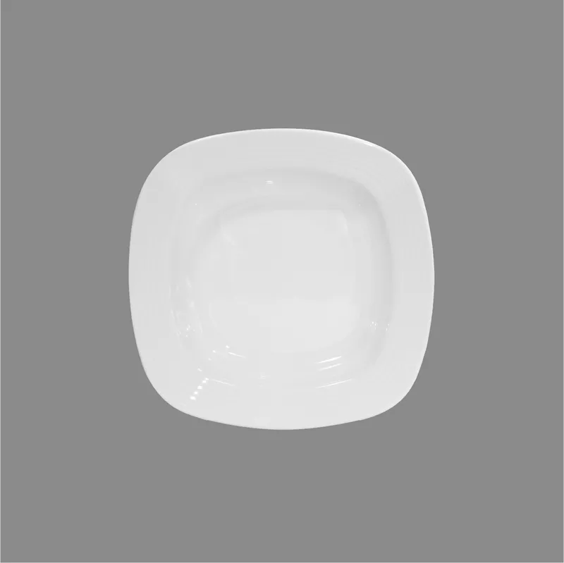 بشقاب گود خورش خوری چینی زرین مربع سفید (سایز 22)