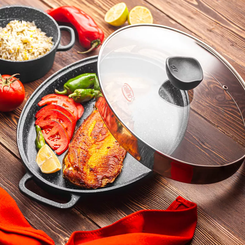 خرید تابه چدنی نالینو مدل پولو Pollo (سایز 34) با درب: