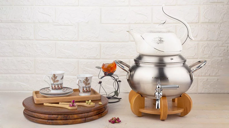 - ترکیب : کتری با درب - قوری با درب - پایه وارمردار