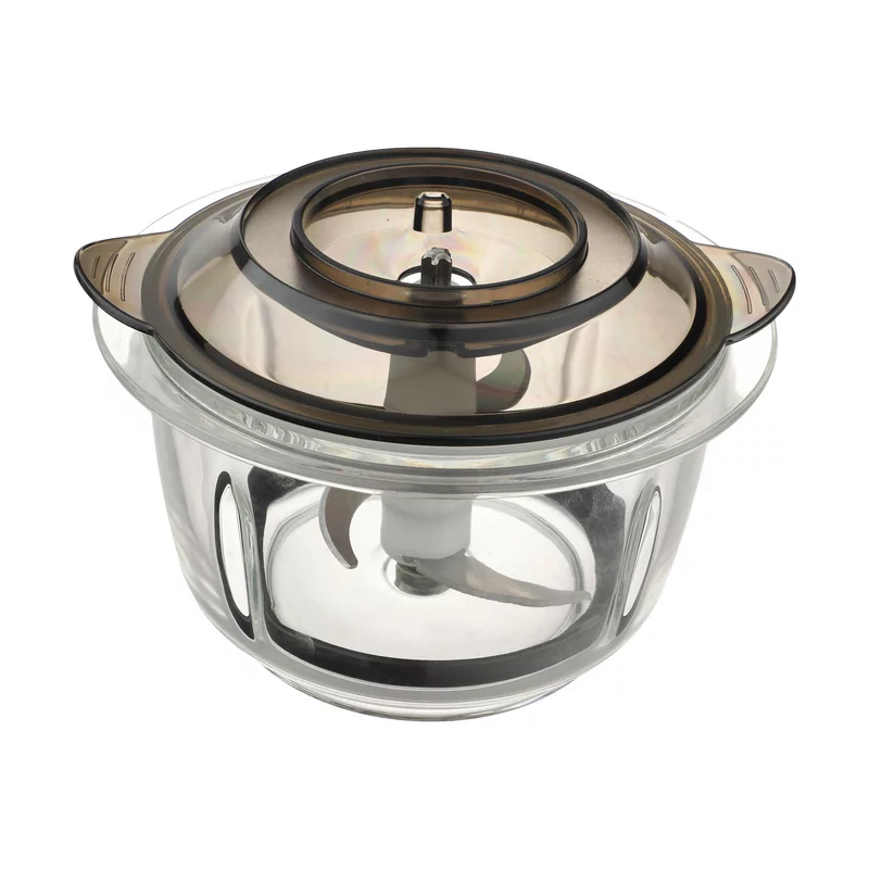 از شیشه پیرکس ساخته شده است که از لحاظ بهداشت و سلامت در درجه بالایی برخوردار است. حجم مخزن خردکن، 1200 میلی لیتر می باشد.