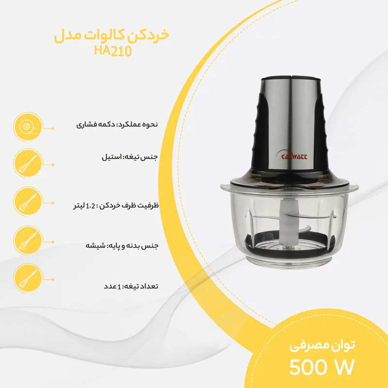خردکن کالوات مدل HA210 دارای یک موتور فوق العاده با کیفیت با توان 500 وات تیغه ی های استیل ضد زنگ می باشد.