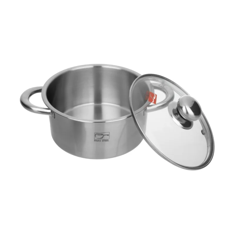 قابلمه پارس استیل کف سه لایه مخصوص پخت غذای برای خوانواده های کم جمعیت است. مزیت قابلمه استیل کف سه لایه در عدم استفاده از روغن و جلوگیری از بیماری های مربوط به آن هست. از دیگر مزیت های قابلمه سایز 18 پارس استیل قابلیت استفاده در داخل فر (مقاومت بالای قابلمه) یا استفاده بر روی ذغال است.