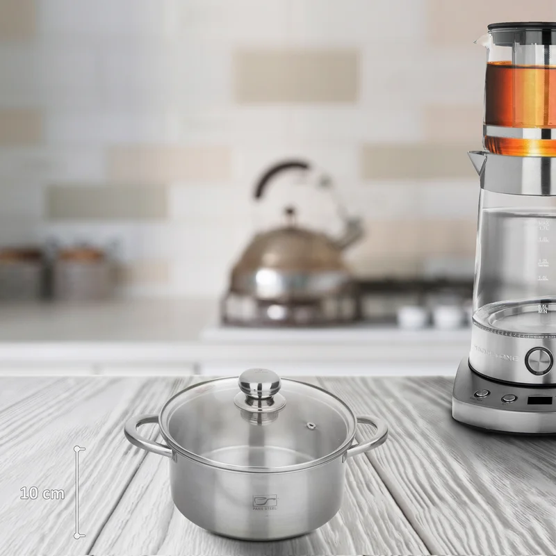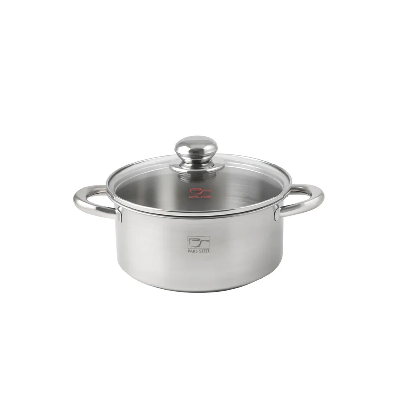 اگر برای درست کردن غذا در مقادیر کم به قابلمه ای کوچک و کاربردی نیاز دارید، قابلمه پارس استیل کف سه لایه (سایز 20) انتخابی عالی است. قابلمه سایز 20 درب پیرکس یکی از محصولات پرطرفدار برای خوانواده های کم جمعیت می باشد. قابلمه پارس استیل از بهترین نوع استیل ضد زنگ و ضد خش 18/10 تولید شده. یکی از مزیت های قابلمه پارس استیل کف سه لایه است که مانع از چسپندگی و سوختن غذا می شود. محصولات پارس استیل با انواع اجاق گاز ها سازگارند.