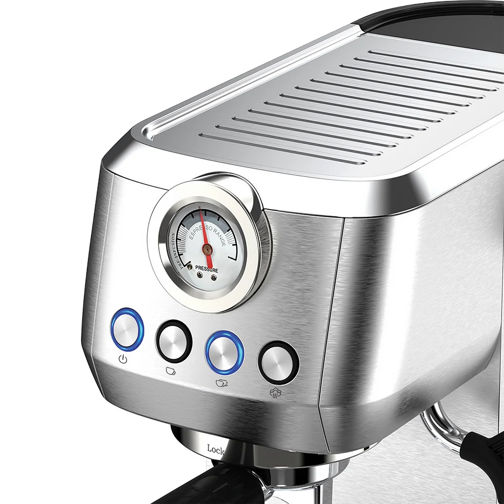 اسپرسوساز مسترپلاس مدل C801 با توجه به خصوصیات ویژه‌ای که دارد گزینه‌ای عالی برای استفاده خانگی و همچنین استفاده در محیط‌های اداری کوچک است. از دیگر ویژگی‌های اسپرسوساز مدل C801 می‌توان به نمایش میزان فشار Pressure Gauge، نازل بخار برای فوم شیر، سیستیم حرارتی Thermoblock، سینی چکه گیر با قابلیت جداشونده جهت شستشوی آسان و داشتن سینی استیل در بالای دستگاه برای گرم کردن فنجان اشاره کرد.