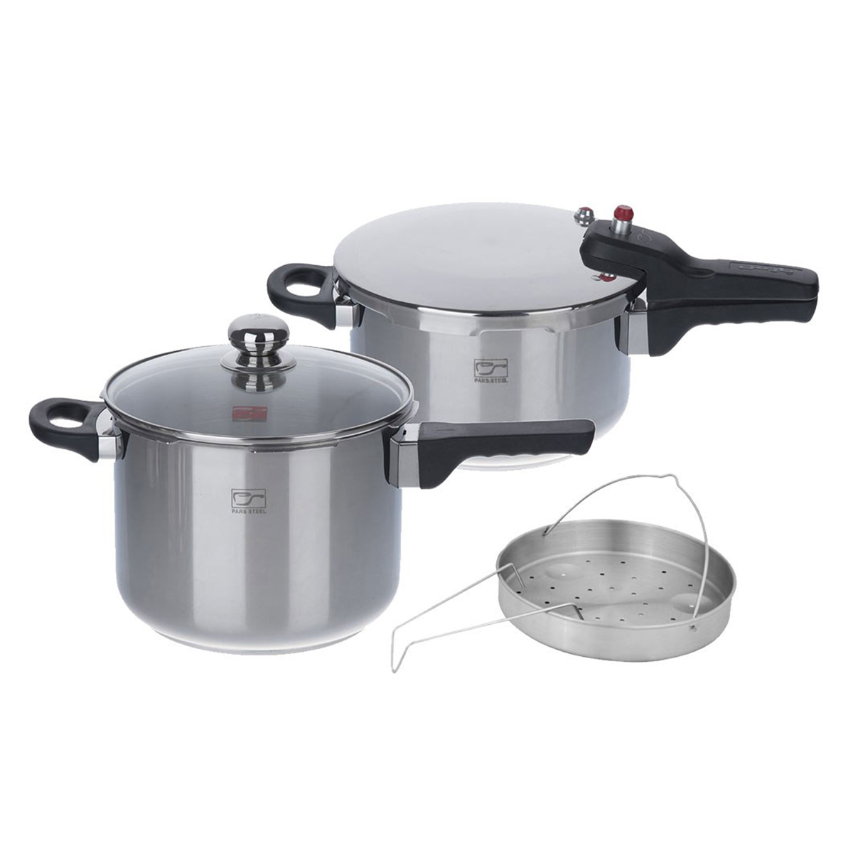 Parssteel Twin Pressure-Cooker 6+4.5 Litres With Lid And Steamer