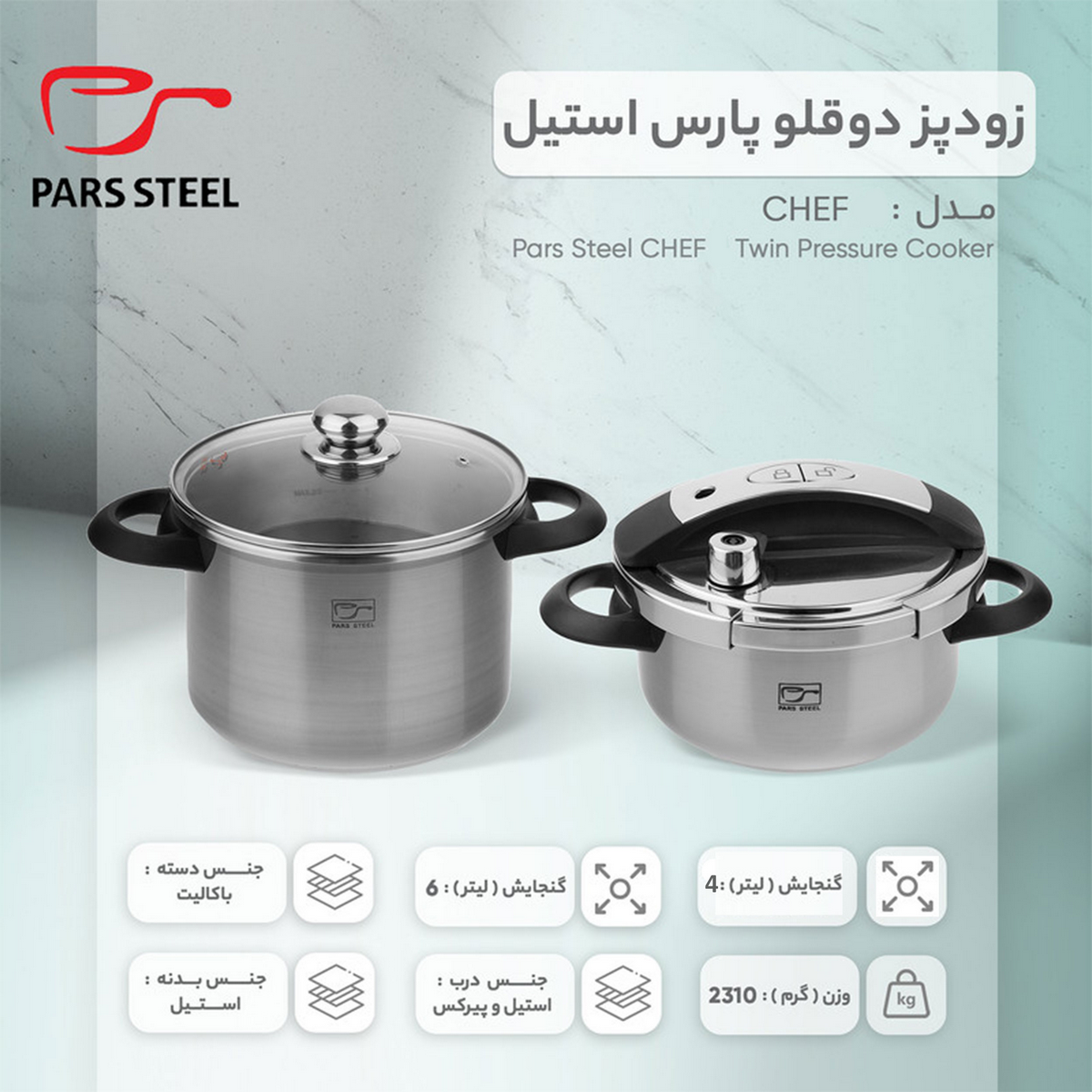 زودپز دوقلو پارس استیل مدل شف (4 و 6 ليتر) با درب