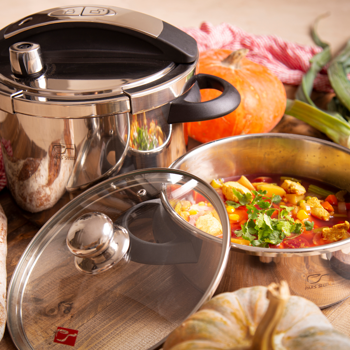 معرفی زودپز دوقلو پارس استیل مدل شف (4 و 6 ليتر) با درب: