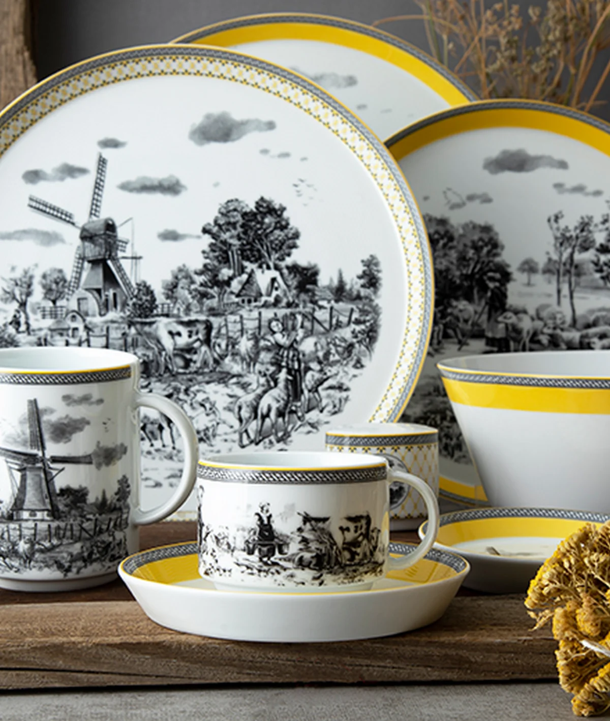 ترکیب بشقاب تخت چینی زرین فرم اس ویلیج (سایز 27):