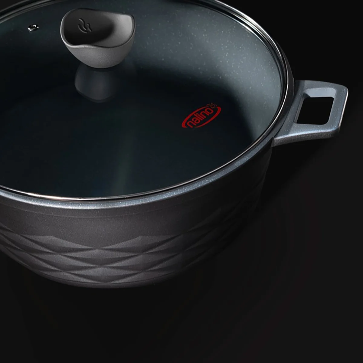 قابلمه گرانیتی نالینو مدل الیتا (سایز 28) با بدنه‌ای از جنس آلومینیوم با کیفیت بالا ویژگی توزیع یکنواخت حرارت را ارائه می‌دهد. قابلمه گرانیتی نالینو مدل الیتا با درب پیرکس شفاف، امکان نظارت بر پخت غذا را فراهم می‌کند و به دلیل پوشش نچسب گرانیتی تمیز کردن آن بسیار آسان است. سایز 28 قابلمه گرانیتی نالینو مدل الیتا برای خانواده‌های متوسط تا بزرگ مناسب بوده و برای پخت انواع غذاها از جمله سوپ، خورش و… کاربرد دارد.