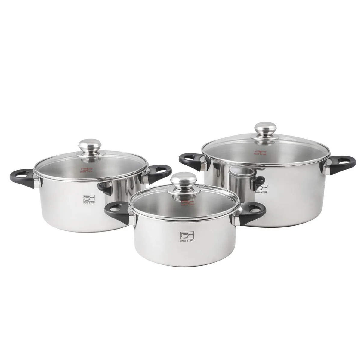 ترکیب سرویس قابلمه پارس استیل کف سه لایه دسته باکالیت (8 پارچه):